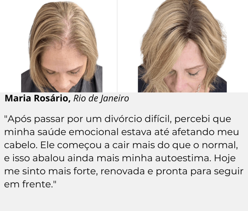 “… Tudo aconteceu de forma tão natural que, em apenas oito semanas, minha vizinha chegou a perguntar se eu havia feito algum procedimento estético, se tinha realizado uma cirurgia ou até mesmo se estava usando prótese capilar (risadas). Foi nesse momento que percebi o quanto eu realmente havia mudado…”